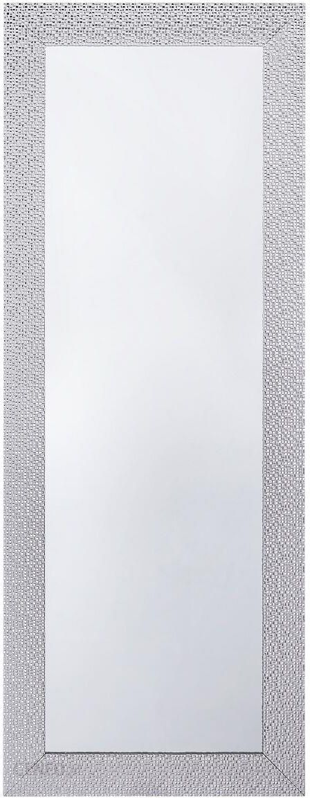Nowoczesne lustro w ramie ze srebrnym wzoremNowoczesny i zarazem elegancki design lustra sprawi, że będzie ono doskonale pasować do wielu pomieszczeń i stanie się wyjątkowym dodatkiem do wystroju. Srebrna rama została wzbogacona delikatną strukturą, która subtelnie rozprasza światło. Lustro o klasycznym prostokątnym kształcie może być zawieszone zarówno w poziomie jak i pionowo.Szczegóły:Typ produktu: Lustro ścienneStyl: NowoczesnyKolor główny: BiałyRodzaj materiału: PlastikMateriał: Materiał syntetycznyMateriał dodatkowy: SzkłoKształt: ProstokątnyWykończenie: OtynkowanyWymiary:Głębokość: 2 cmSzerokość: 50 cmWysokość: 130 cmWaga: 7 kgW ofercie: 1 x LustroCechy produktu: Wysokiej jakości materiały i wykonanie, Wytrzymały i trwały, Optycznie powiększa przestrzeń, Haczyki montażowe z tyłu ramy do zawieszenia na ścianieMontaż: Nie wymaga montażuWskazówki dotyczące pielęgnacji:1.Używać wyłącznie łagodnych środków czystości oraz miękkiej ściereczki, po przetarciu na mokro wytrzeć do sucha.Szkło:1.Do czyszczenia używać wyłącznie łagodnych środków czystości lub detergentów do szkła oraz miękkiej ściereczki. Po przetarciu na mokro, wytrzeć do sucha2.Aby uniknąć zarysowań, nie używać mleczka do czyszczenia.