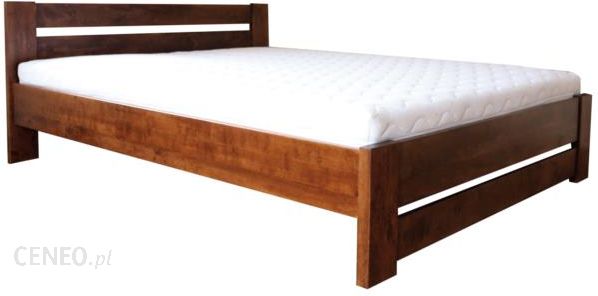 Proste, drewniane łóżko z niewysokim zagłówkiem o solidnej konstrukcji.