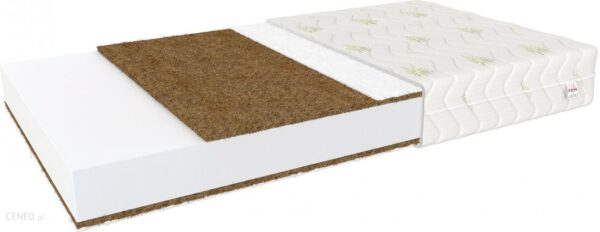 W modelu BABY COCO 2 rdzeń materaca stanowi pianka poliuretanowa T25. Jest to materiał, który nie odkształca się, dzięki czemu materac jest bardzo wygodny i gwarantuje komfort spania. Wysoka jakość pianki zapewnia bardzo dobre podparcie dla kręgosłupa. Dodatkowo został wyposażony obustronnie w matę kokosową, która utwardza materac, nie pozbawiając go elastyczności.Specyfikacja: twardość: H3 średnio twardy, grubość: 8 cm.Skład: Powierzchnia użytkowa: Dwustronne , Wkład kokosowy: 1 cm, Pianka poliuretanowa T25: 6 cm, Wkład kokosowy: 1 cm.