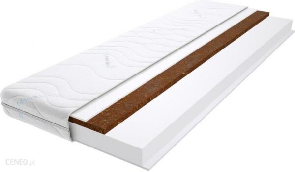 Materac jest dwustronny – obie strony materaca nadają się do spaniaJedna ze stron materaca jest średniotwardaJedna ze stron materaca jest twardaDo wyboru 6 rodzai pokrowców – 1 niepikowany, 5 pikowanychMaterac można używać w łóżkach z regulowanym stelażemMaterac jest hypoalergiczny – zminimalizowane jest ryzyku wystąpienia alergii i uczuleńPianka HR – zbudowana z dużej ilości pęcherzyków, zapewnia idealne dopasowanie do ciała, bardzo dobry komfort snu i gwarantuje idealną wentylację materacaKokos – naturalny surowiec posiadający właściwości antygrzybiczne i antyalergiczne.Pianka wysokoelastyczna HR o gęstości 35kg/m3 – pianka ta zbudowana jest z dużej ilości pęcherzyków, zapewnia idealne dopasowanie do ciała, bardzo dobry komfort snu i gwarantuje idealną wentylację materaca. Zwiększona gęstość pianki HR wydłuża zdecydowanie trwałość materaca w porównaniu do zwykłej pianki poliuretanowej T25. Używana w naszych materacach bonellowych i kieszeniowych bezpośrednio nad i/lub pod filcem, a w materacach piankowych stanowiąca większość materaca.Kokos – zastosowanie kokosu w materacu powoduje, że ta strona automatycznie staje się twarda. Kokos to naturalny surowiec wykonany z łupiny orzecha kokosowego. Jego właściwości antyalergiczne i antygrzybiczne docenią przede wszystkich alergicy. Warstwa kokosowa poprawia wentylację materaca, bardzo dobrze przepuszcza powietrze przez co niweluje efekt pocenia się.Włókno klimatyzujące nazywane też owatą to ostatnia warstwa zastosowana w budowie materaca przed pokrowcem. W przypadku pokrowców niepikowanych połączona z materacem, w pokrowcach pikowanych owata jest przepikowana z pokrowcem, a tym samym do niego przytwierdzona. Jest to materiał, który poprawia wentylację materaca oraz wzmacnia jego wytrzymałość.Pokrowiec – każdy nasz pokrowiec posiada zamek w kształcie litery L (odsuwany jest jego krótszy i dłuższy bok)– nadaje się do ściągnięcia i prania. Po wypraniu zalecamy zakładać pokrowiec lekko wilgotny na materac – ułatwi to jego zakładanie.Do wyboru jest 6 modeli pokrowców – wszystkie informacje na temat oferowanych pokrowców można znaleźć w tym artykule: Jaki pokrowiec należy wybrać do materaca.Ważne: pokrowiec może mieć różne ułożenie napisów i znaków w zależności od jego rozmiaru. Wzór pokrowca może się nieznacznie różnić od prezentowanego na zdjęciu.