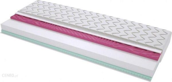 Wszystkie nasze materace posiadają antyalergiczny pokrowiec niepikowany z zamkiem w kształcie litery L. Zastosowano obustronnie włókno klimatyzujące 150g/1m.Budowa materaca pozwala na używanie go w łóżkach z regulowanym stelażem.Materac dwustronny – obie powierzchnie materaca stanowią powierzchnię użytkową.Materac jest hypoalergiczny z racji tego zminimalizowane jest ryzyko wystąpienia uczulenia, alergii.Wysokiej jakości pianka poliuretanowa T25 o podwyższonej wytrzymałości i elastyczności.Materac jest średniotwardy.Siedmio strefowa pianka profilowana moletowanaPokrowiec posiada zamek co ułatwia ściągnięcie go i wypranie (temp. 40 stopni Celcjusza)Lateks – charakteryzuje się trwałością i elastycznością. Doskonale dostosowuje się do kształtu ciała, poprawia komfort snu. Ma właściwości antybakteryjne i antygrzybiczne.Podwójny system klejenia pozwala zwiększyć jakość, ale również przedłużyć żywotność materaca.Pokrowiec niepikowany – materiał hipoalergiczny, antyuczuleniowy, wyposażony w zamek w kształcie litery L. Pokrowiec można łatwo ściągnąć i wyprać (zalecane pranie min. raz na pół roku). Delikatny, przyjemny, wysoka jakość oraz gramatura dzianiny pokrowca sprawia, że jest on zaraz wytrzymały jak i przyjemny i delikatny w codziennym użytkowaniu.Profilowana pianka moletowana – pianka ta posiada szereg następujących po sobie wgłębień i wypustek co składa się na 7 strefowe profilowanie materaca. Pianka ta znacząco poprawia wentylację materaca. Idealnie dopasowuje się do kształtu ciała. Posiada dużą gęstość, zapewnia bardzo dobrą odporność na odkształcenia oraz poprawia krążenie krwi i posiada właściwości masujące.Pianka T25 – wysokiej jakości pianka poliuretanowa zapewnia właściwe krążenie krwi, anatomiczne dopasowanie się materaca do kształtu ciała. Wzmacnia poczucie komfortu i wygody użytkowania.Włókno klimatyzujące, owata (150g/1m) – zapewnia odpowiednią wentylację materaca, wzmacnia jego wytrzymałość – w pokrowcu pikowanym połączona z pokrowcem, co skutecznie uniemożliwia jego pranie w pralce. W pokrowcu niepikowanym jest częścią wewnętrzną materaca, nie połączone z pokrowcem, pozwala na pranie pokrowca w pralce.Lateks – zastosowanie tego materiału bardzo dobrze wpływa na jakość snu i sprężystość materaca oraz zmniejsza jego twardość. Zastosowaniu lateksu zwiększa obieg powietrza wewnątrz materaca, dzięki specjalnym kanalikom. Sprężysty materac to dużo lepiej dopasowuje się do kształtu ciała, podpiera je równomiernie, co wpływa na lepsze, właściwe krążenie krwi.